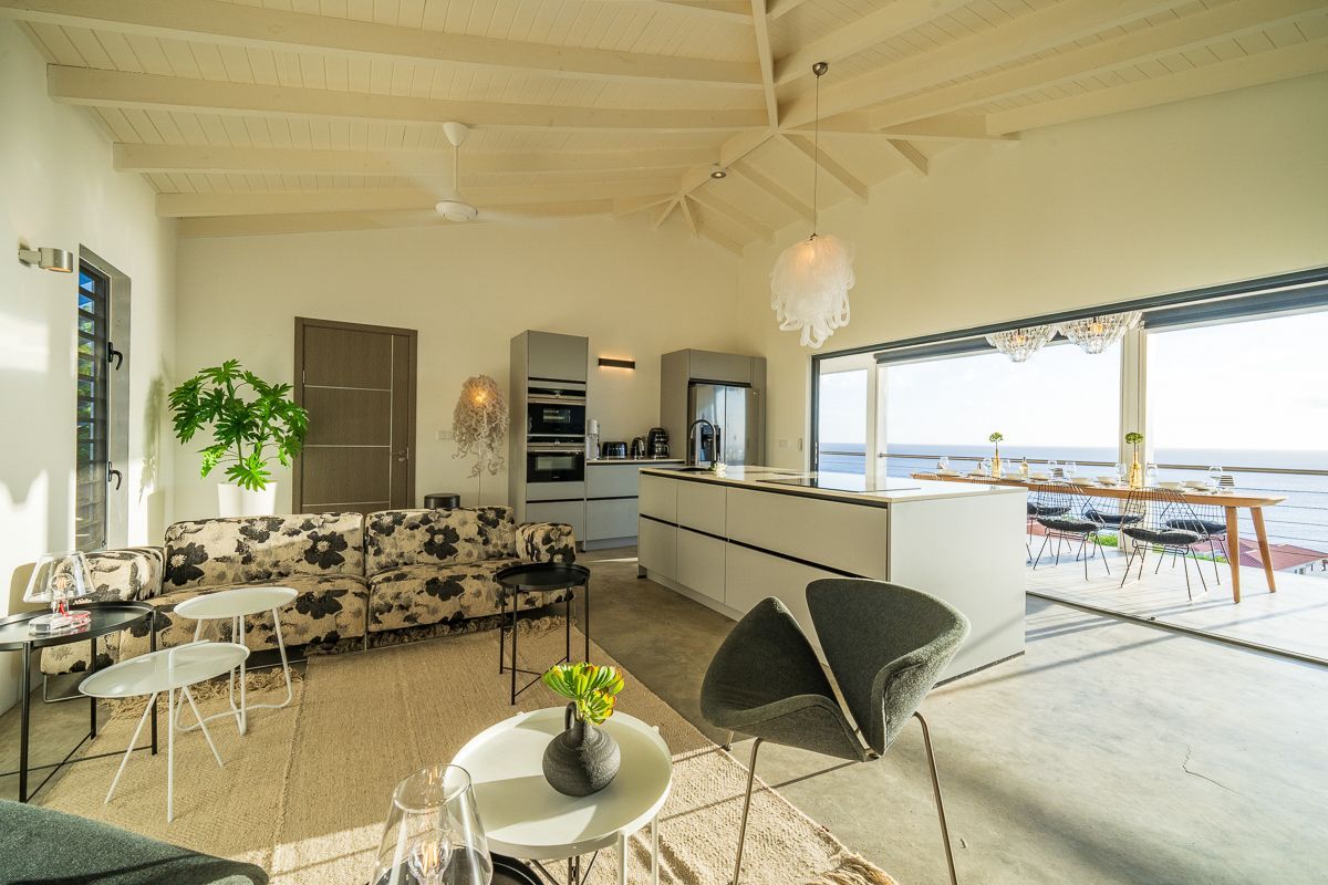 Designed to blend indoor comfort with outdoor beauty, the villa’s living area is open and airy, inviting tropical breezes and magical ocean views.